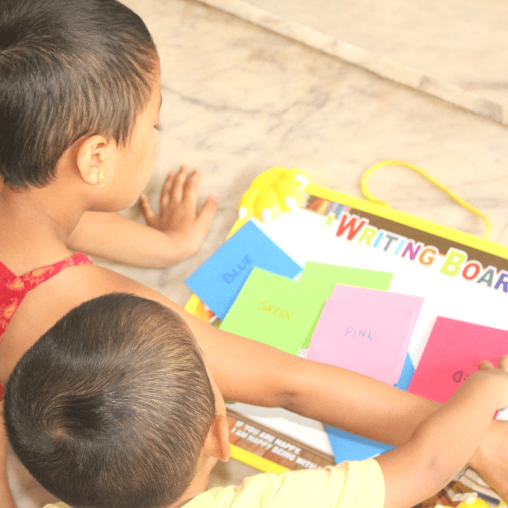 Medha didn’t go to school that day due to pain in her middle ear. She was more excited about teaching Madhav than I was, so I let her take charge.